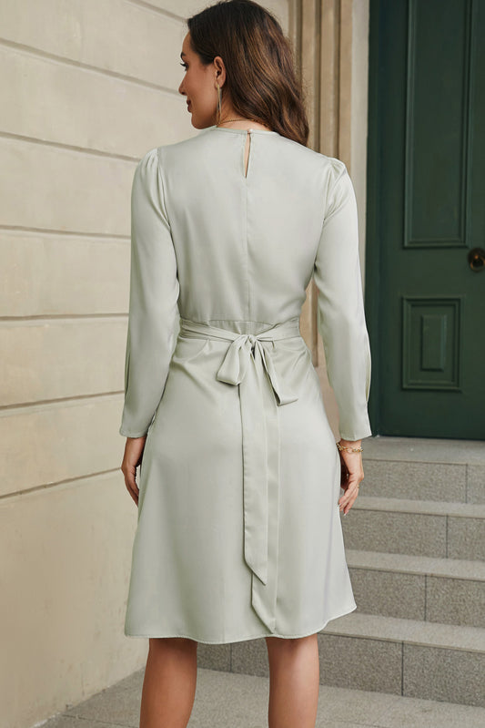 Sold outTextured Cutout Mock Neck Wrap Dress