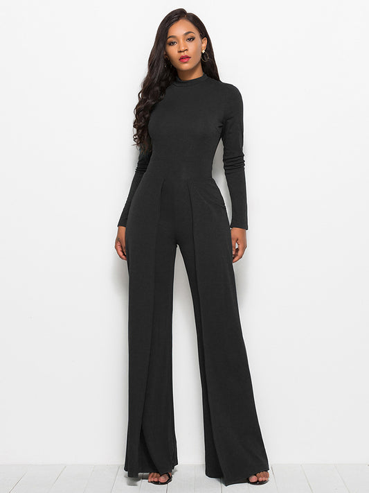 Long Sleeve Mock Neck Wide Leg Jumpsuit