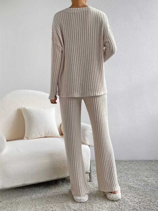 Ribbed V-Neck Long Sleeve Top and Pants Set