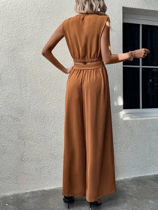 Collared Neck Long Sleeve Top and Wide Leg Pants Set