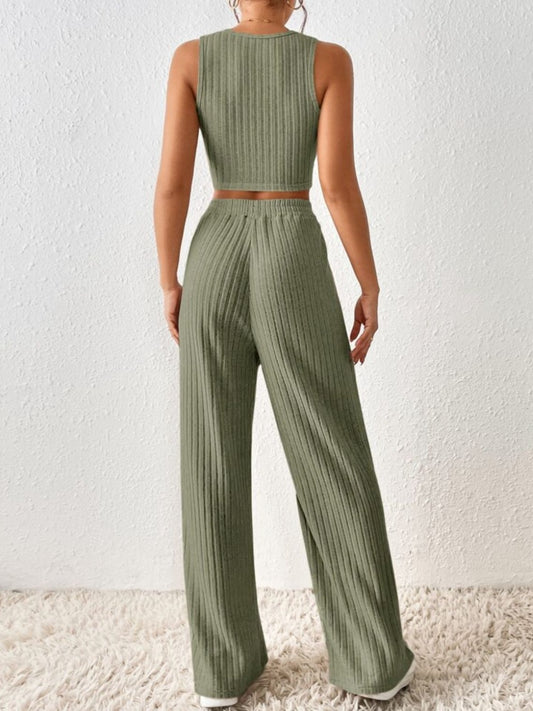 Half Button Round Neck Top and Drawstring Pants Lounge Set