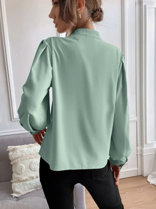 Lace Mesh Flounce Sleeve Ribbed Blouse