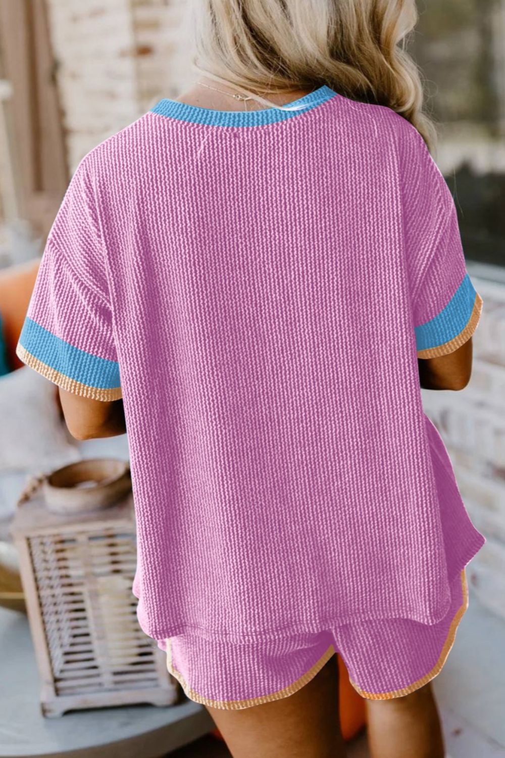 Contrast Trim Round Neck Top and Shorts Set