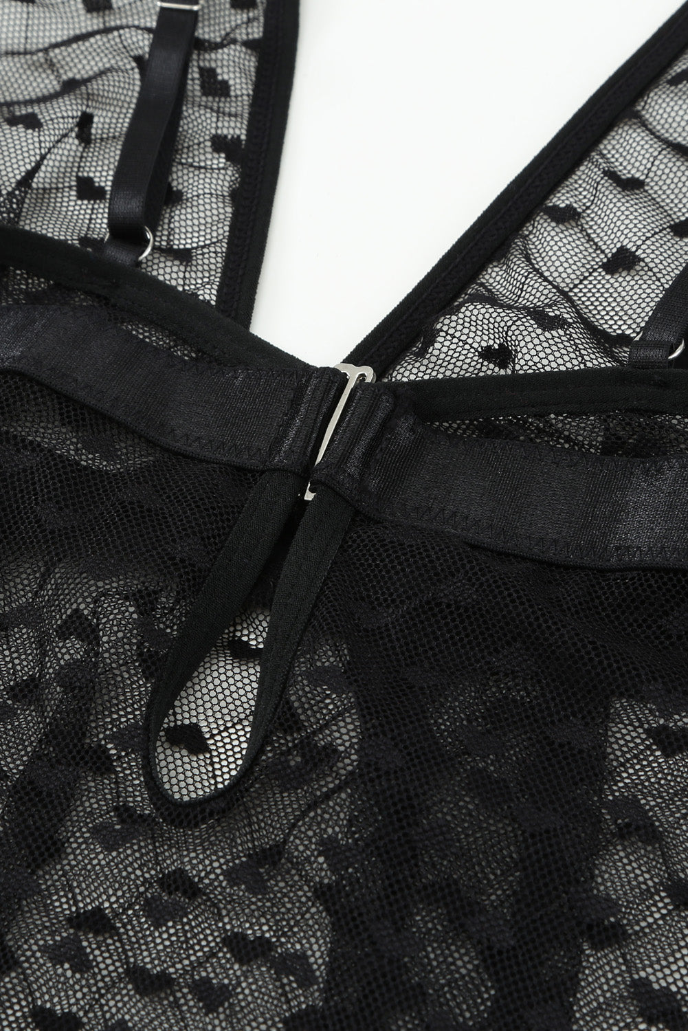 Heart Print Slit Hem Babydoll Lingerie Set with Thong